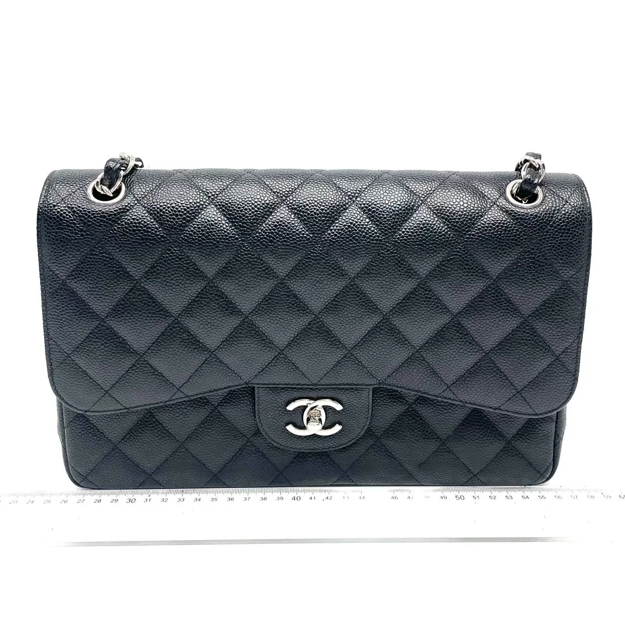 CHANEL Classic Jumbo Double Flap Bag Black Patent Silver Hardware