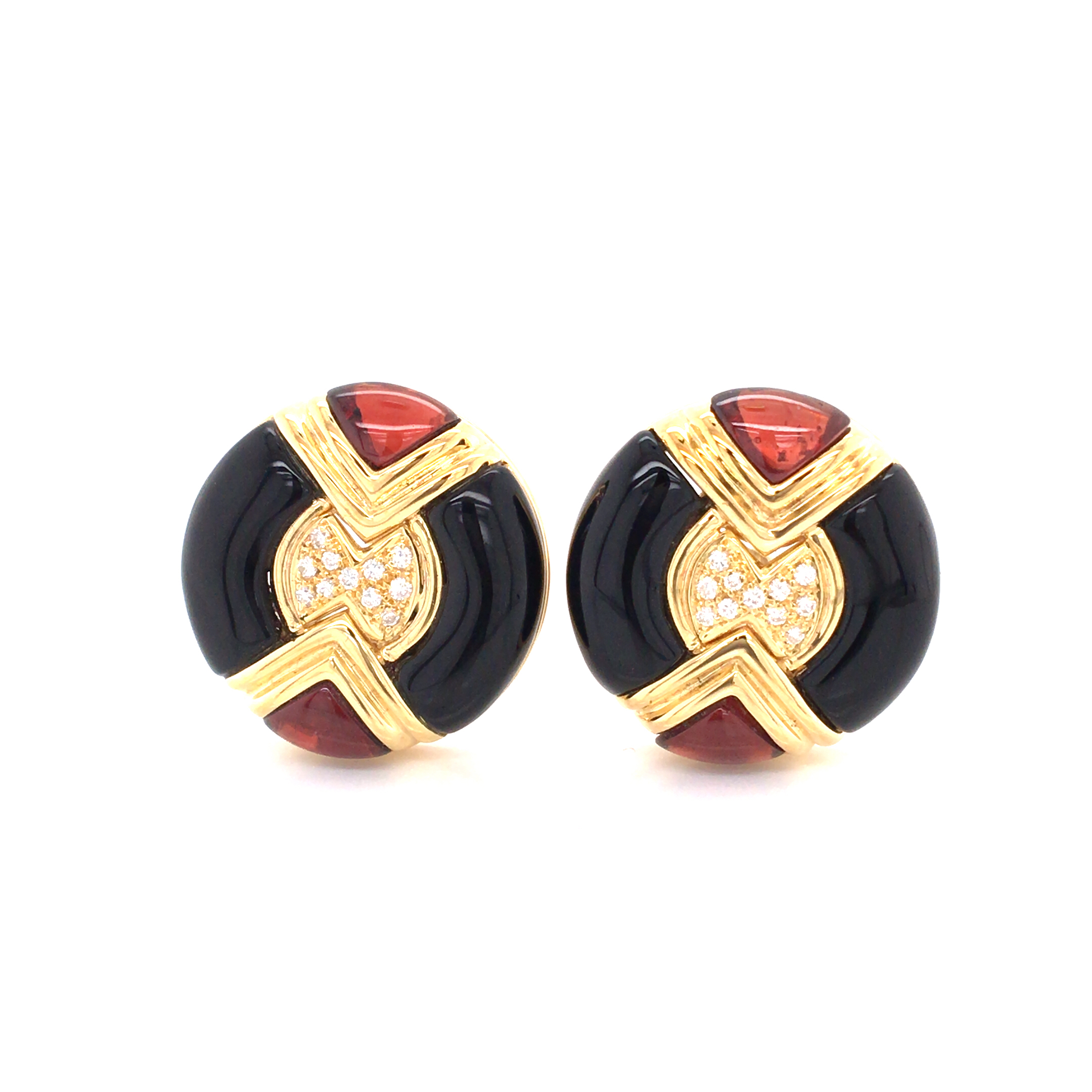 Yellow gold clips with diamonds and onyx