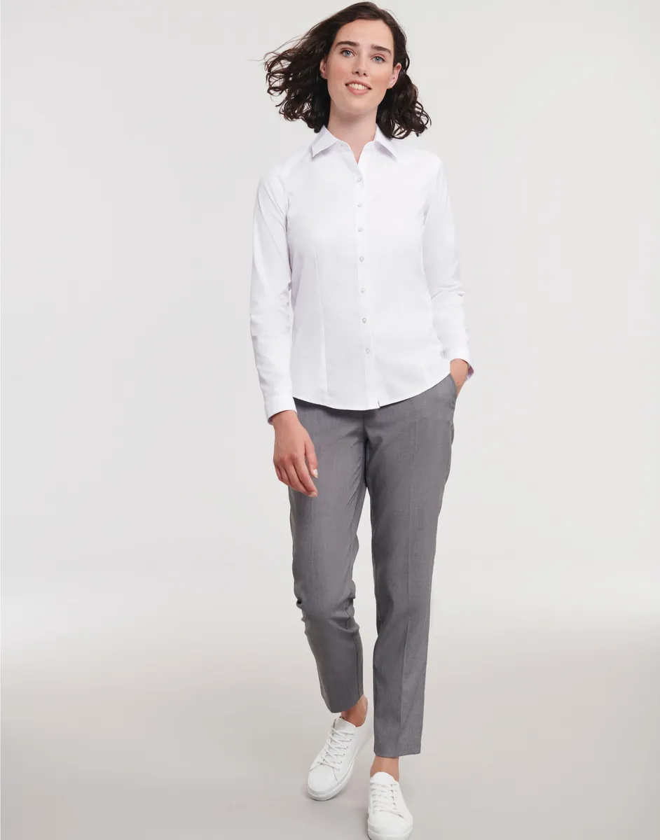 Russell Collection Ladies’ L/Sleeve Herringbone Shirt