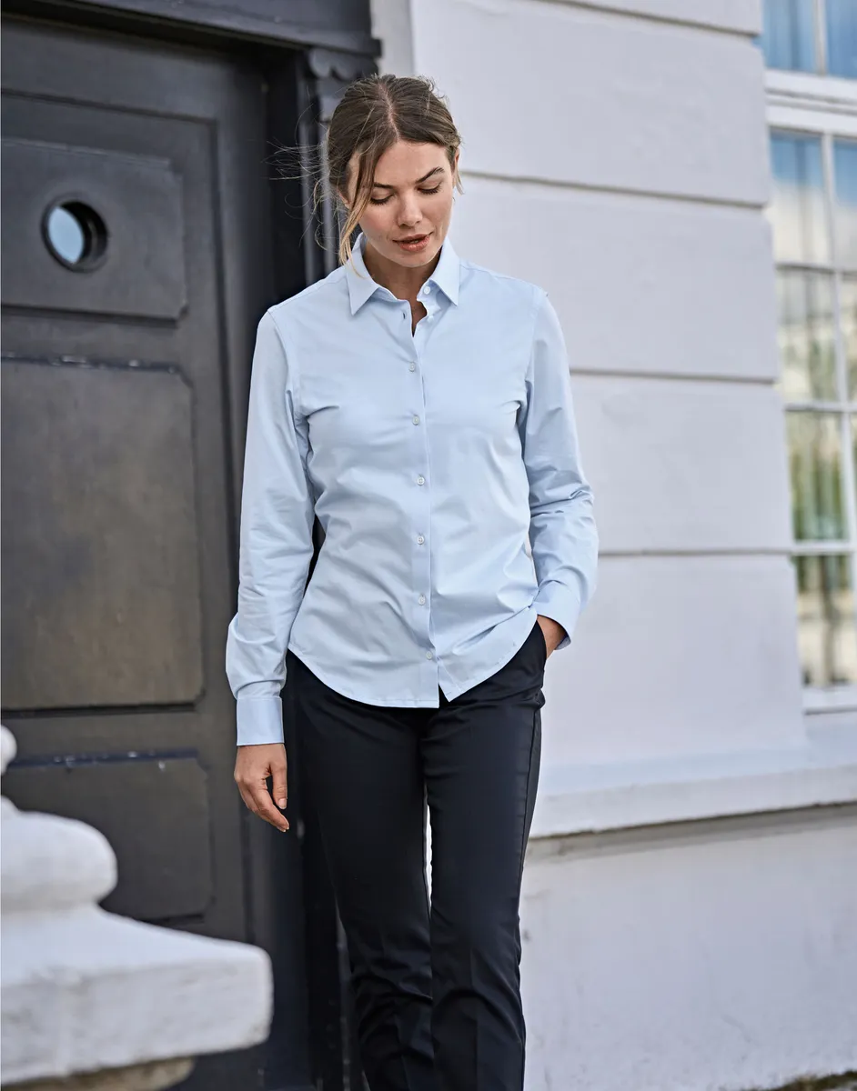 Kustom Kit Tailored Fit L/S Stretch Oxford Shirt